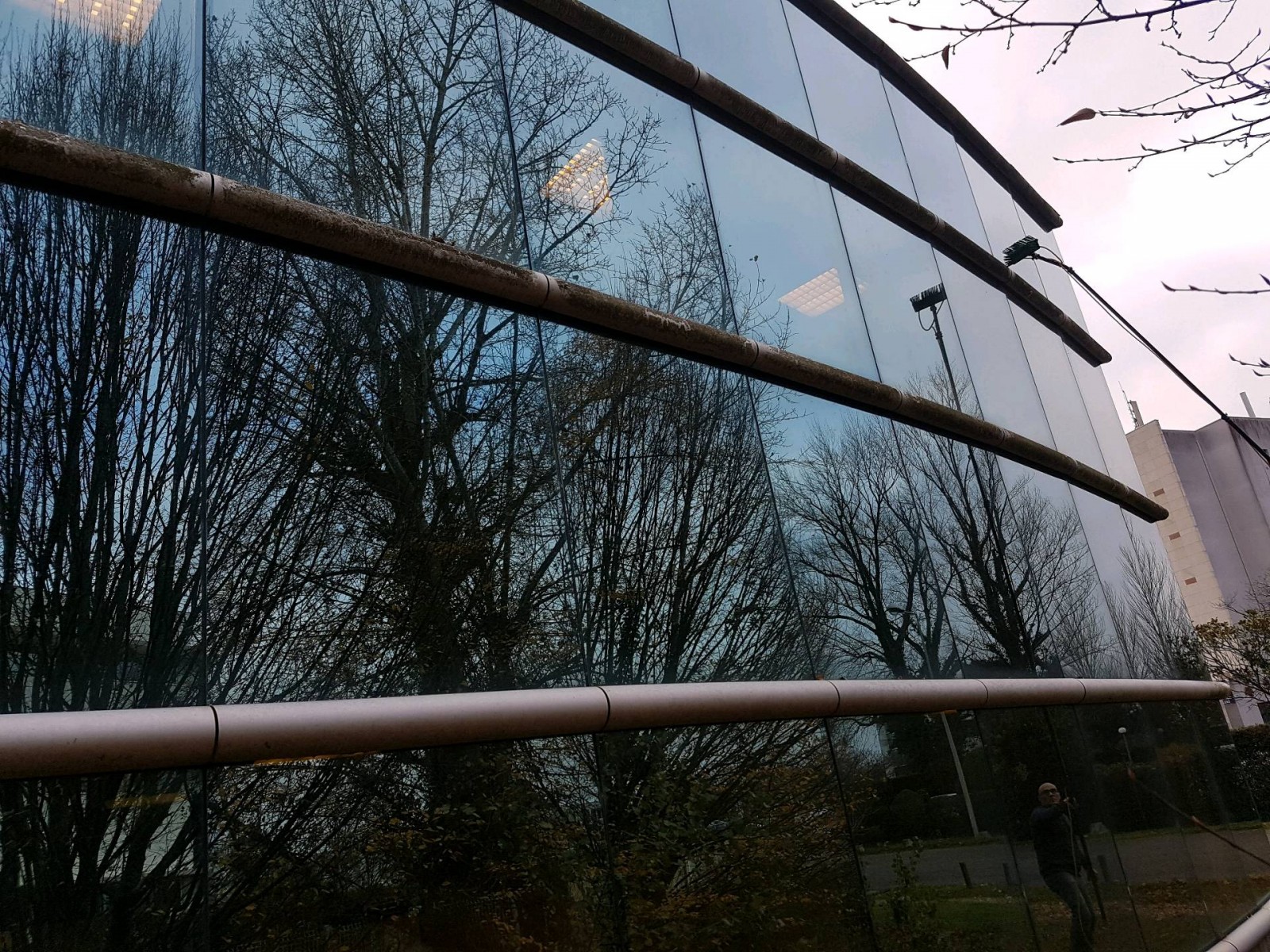 At Propreté Services a utilisé la machine H20 pour des raisons de difficulté d'accès. En effet, nous ne pouvions pas utiliser de nacelle car il y avait un dénivelé trop important et des arbres qui empêchaient d'intervenir pour ce